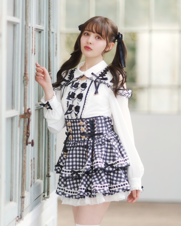 Ladder Ribbon Gingham Tiered Skirt-Pants