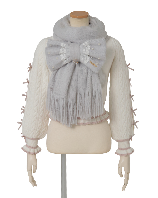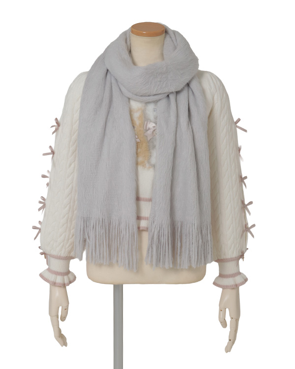 The popular ribbon scarf now comes in a shaggy fabric! ♡ The ribbon features lace and pearls, designed to add a touch of elegance around your face. The scarf threads through a loop at the back of the ribbon, making it easy to achieve a beautiful, neat bow shape. *Due to the nature of the fibers, some pilling may occur, but this does not affect the appearance. Any pilling that attaches during wear due to friction can be removed by brushing.
