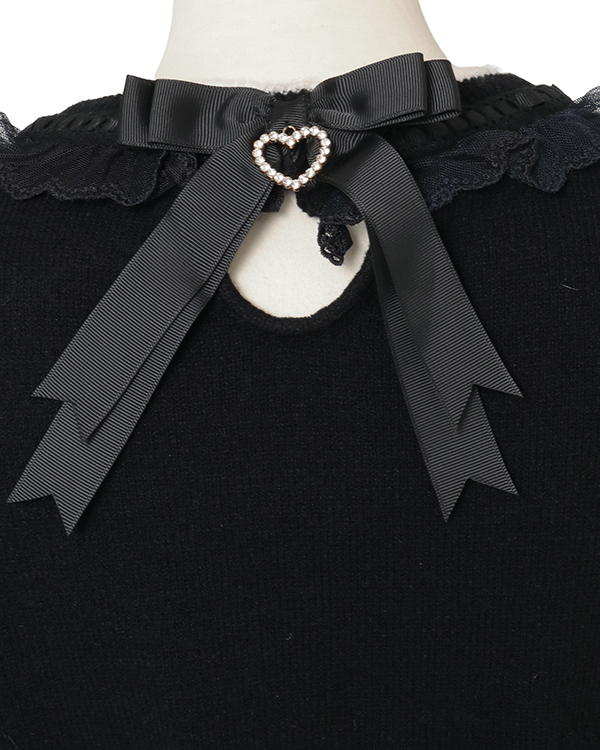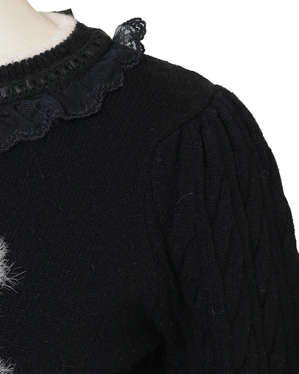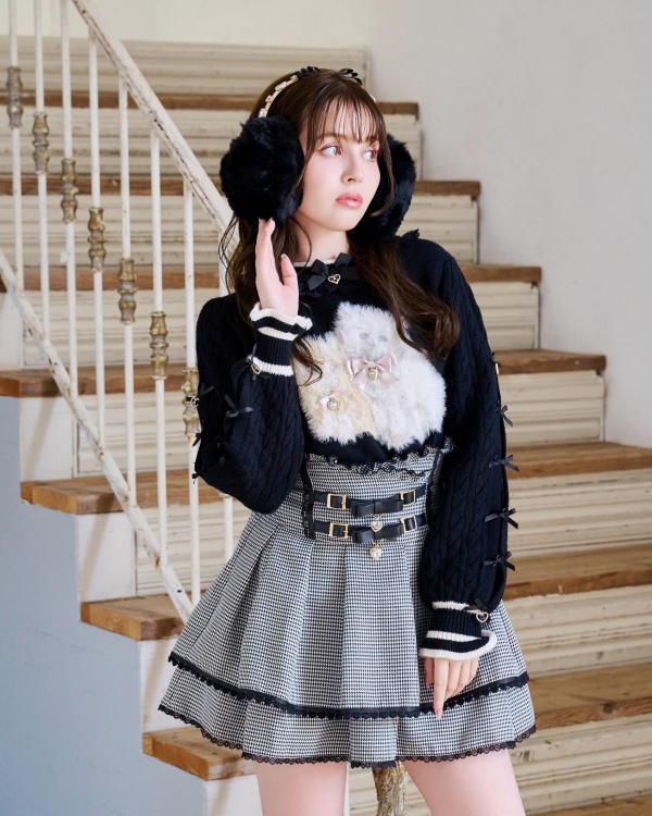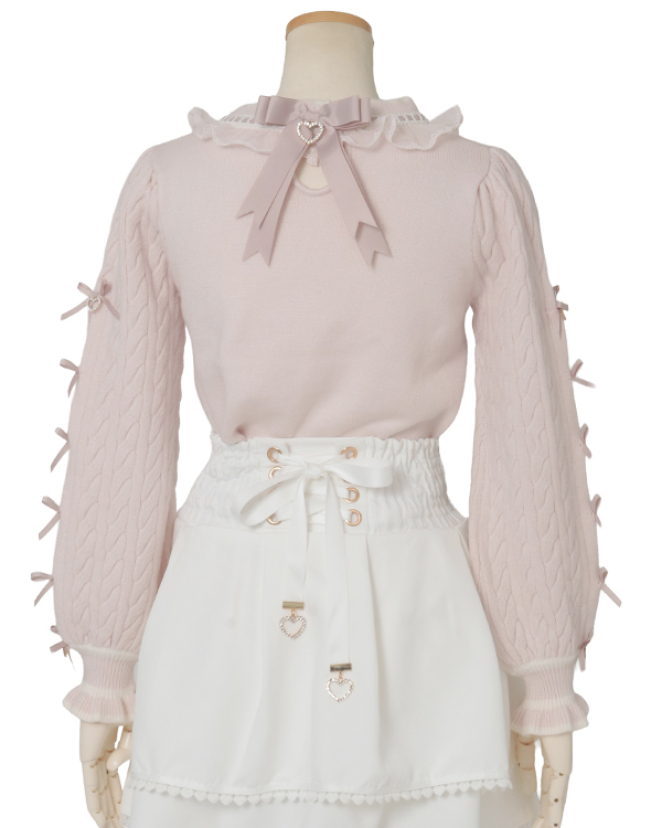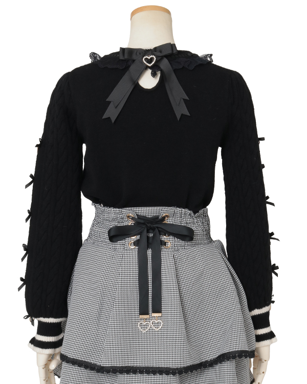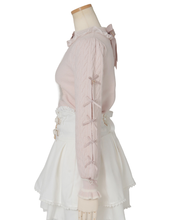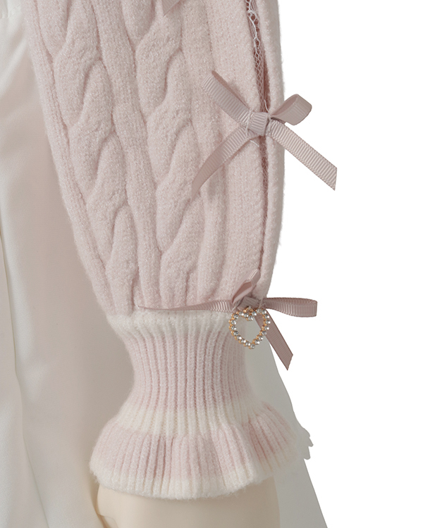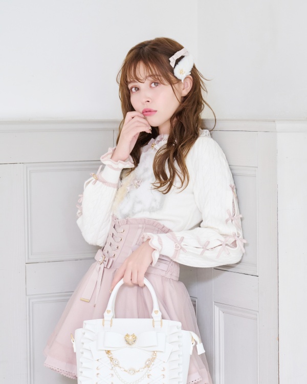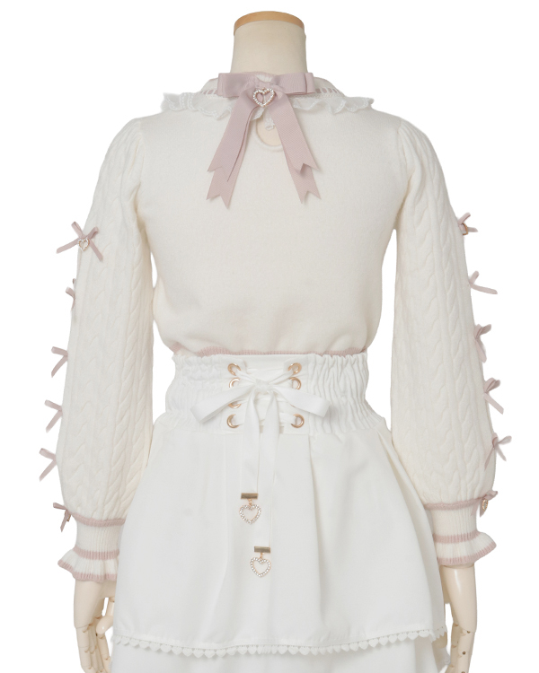 This knit features an adorable jacquard cat pattern on the front. The highlight is two stylish kitties accessorized with ribbons and pearl necklaces♡ The sleeves feature a slit and ribbon design, with attention to detail throughout for maximum cuteness. Its compact fit pairs perfectly with voluminous bottoms.