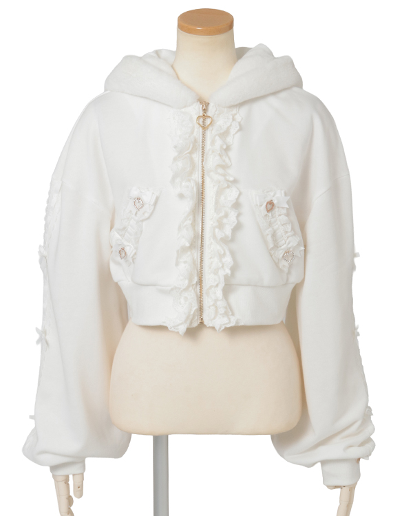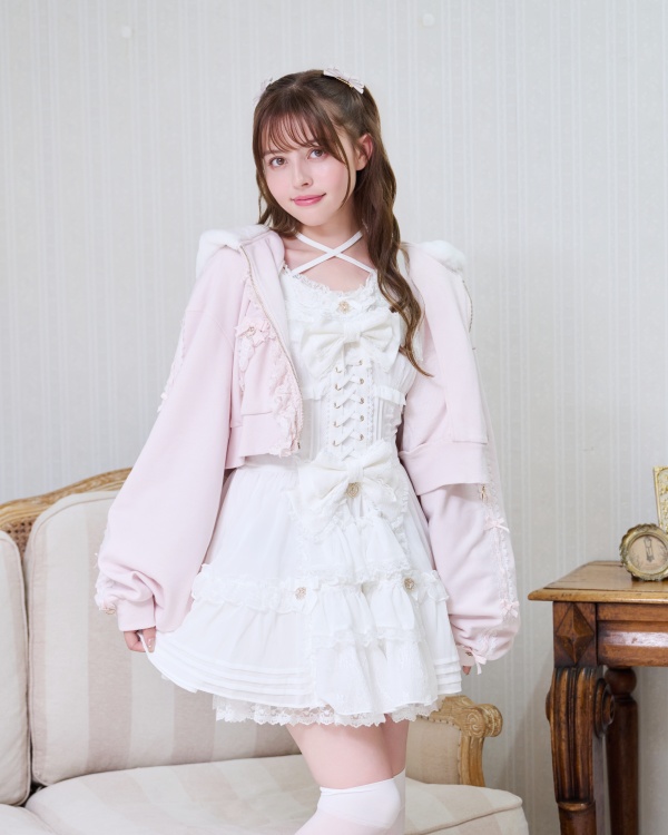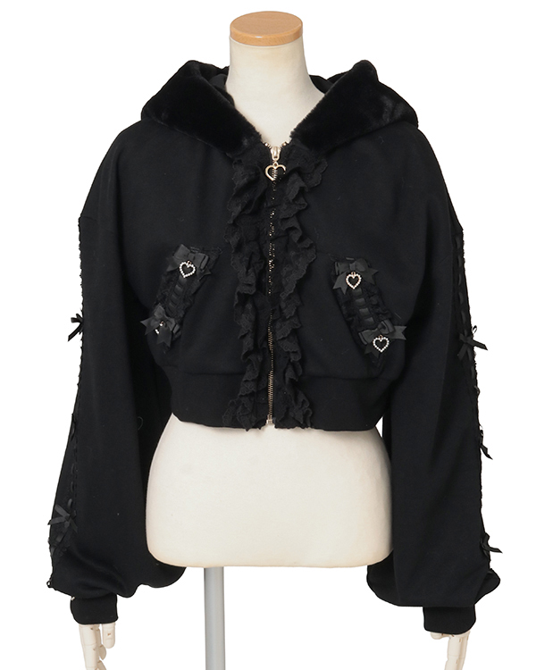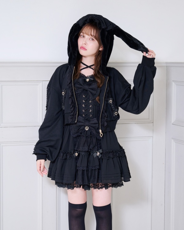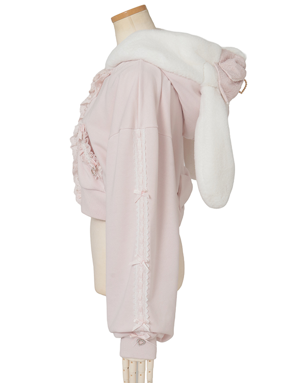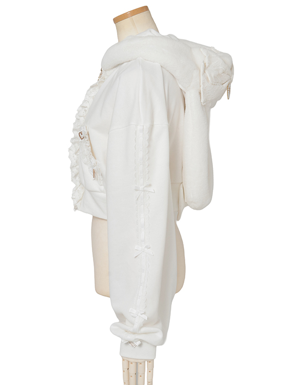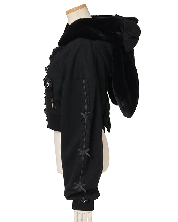 A cute hoodie with fur bunny ears arrives in a cropped length♡ The cropped length makes it easy to pair with various items and offers a flattering silhouette◎ The bunny ears are detachable with buttons.