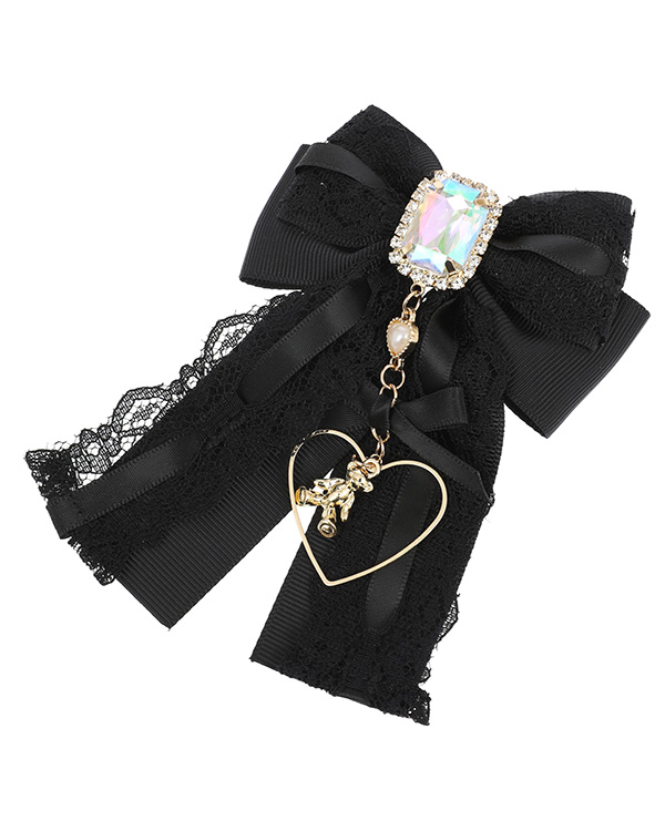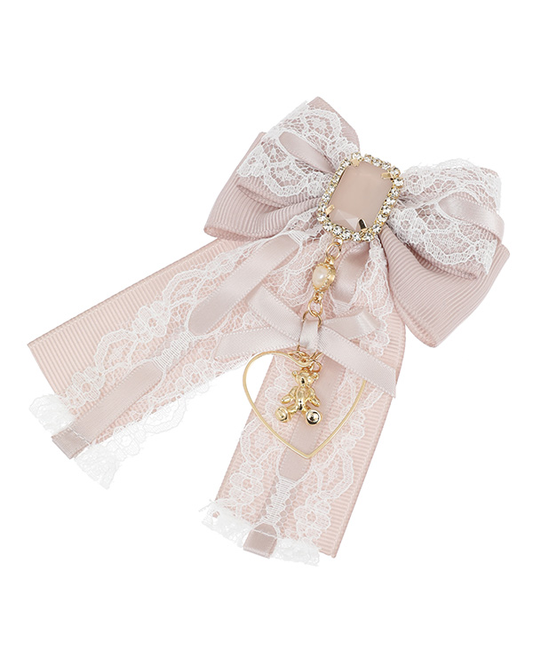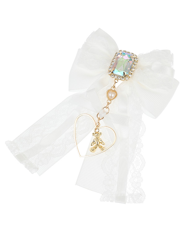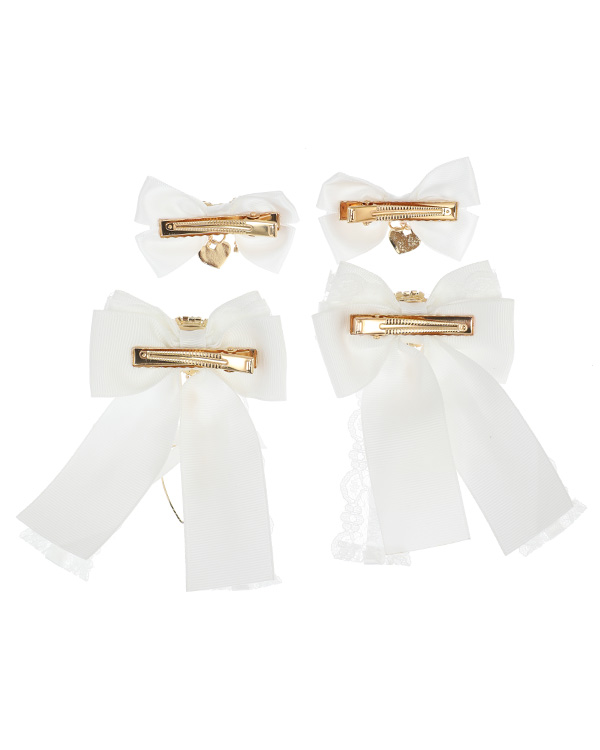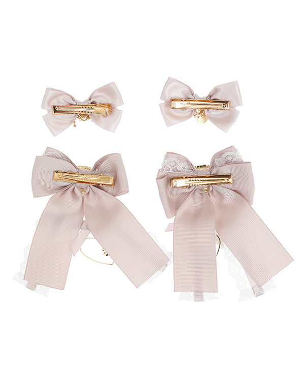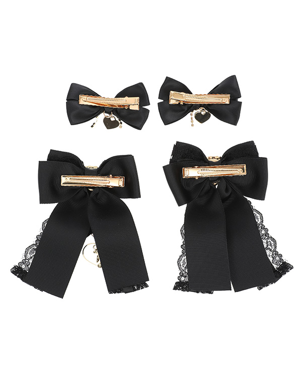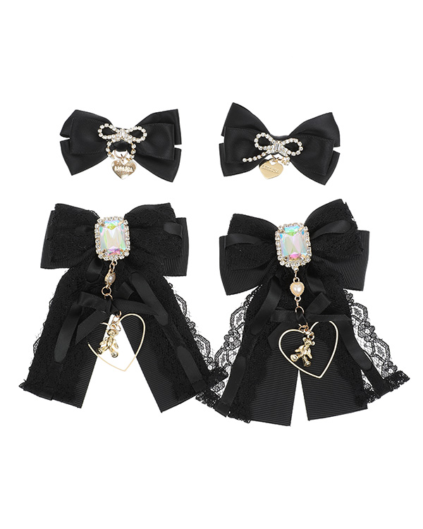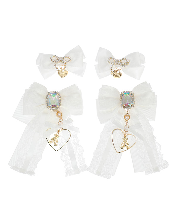 This adorable 4-piece ribbon clip set features cute bear-themed charms. The larger ribbon boasts ladder lace and a charming dangling heart × bear charm as its cute highlights♡ The smaller ribbon features a sparkling ribbon motif and is a practical, easy-to-use size.