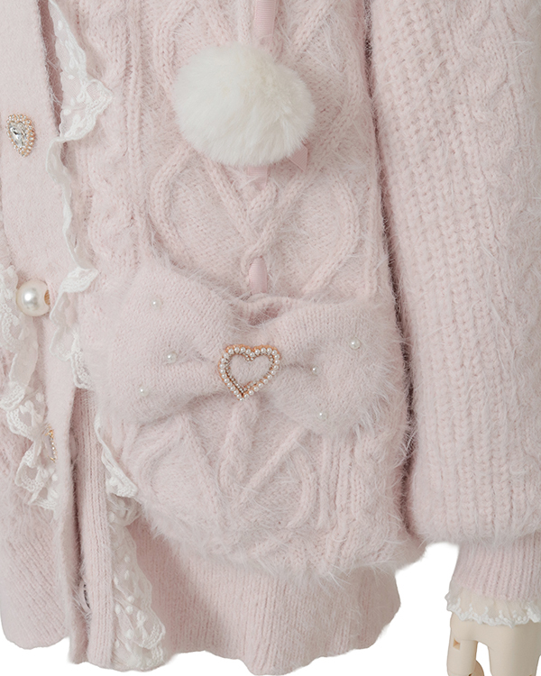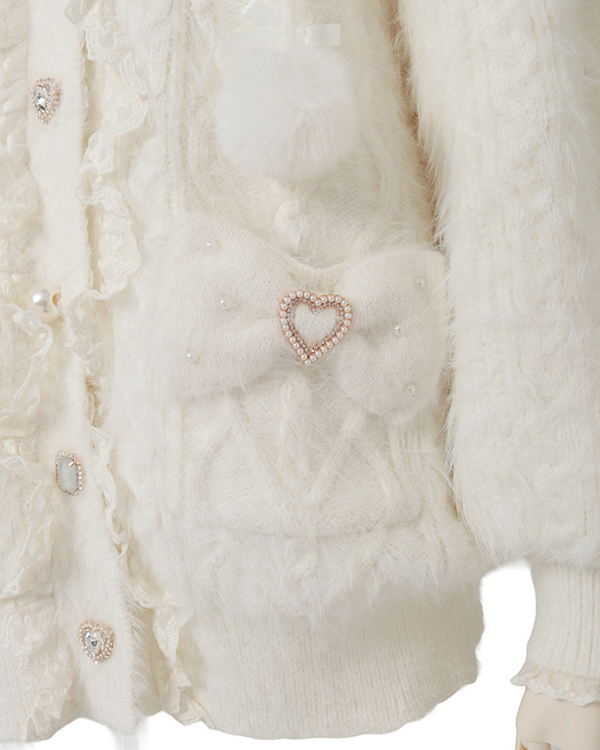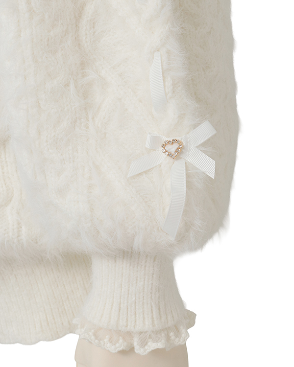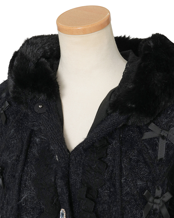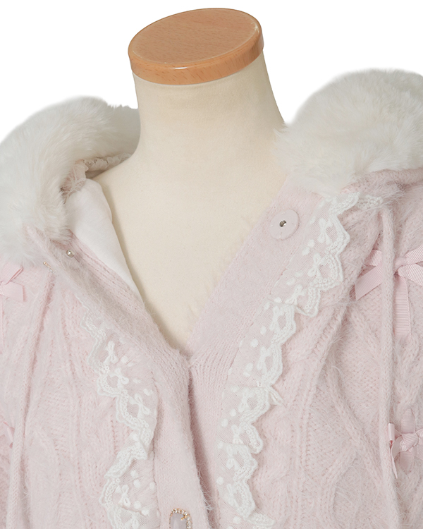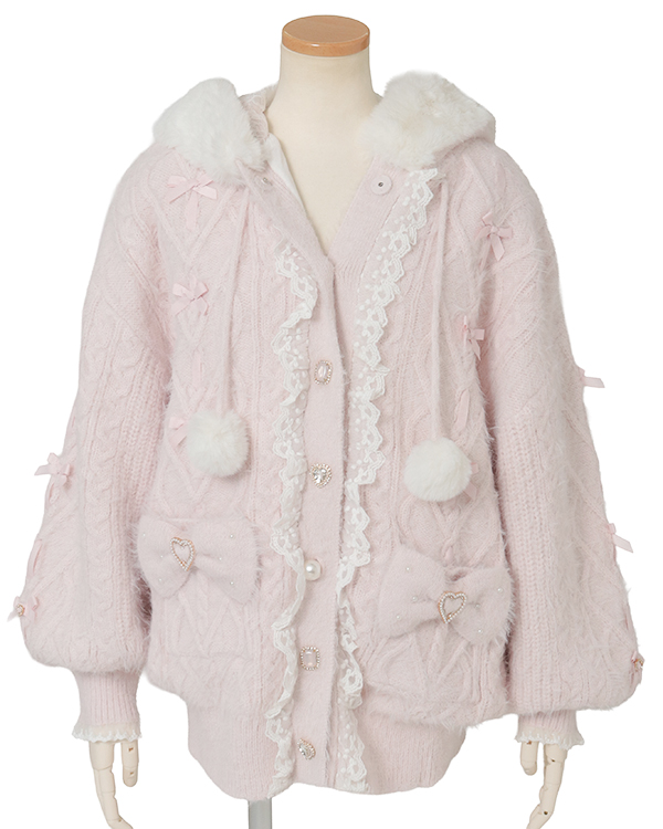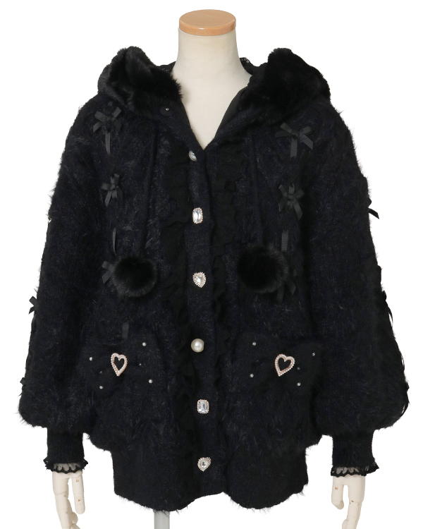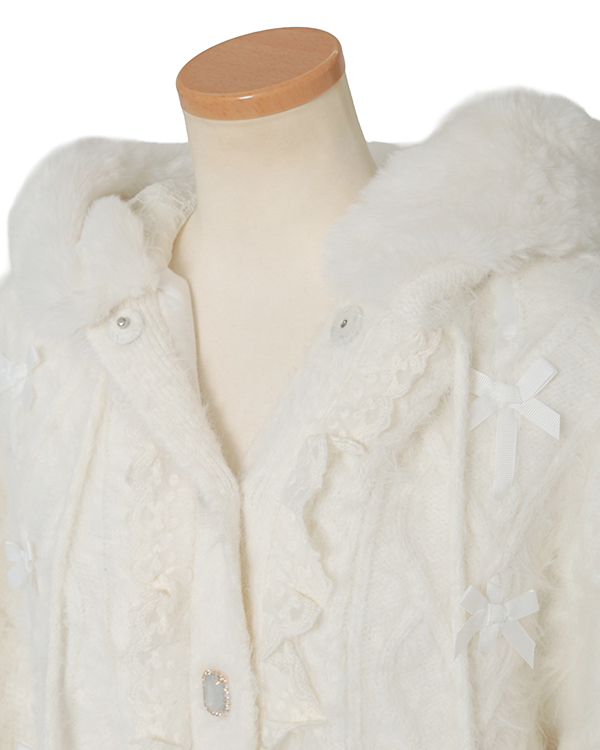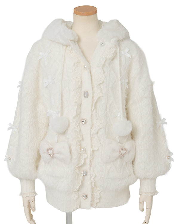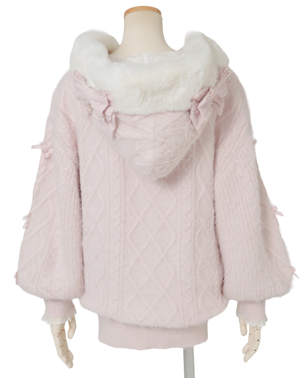 The super popular bunny ear hoodie is now in knit fabric♡ Made from fluffy feather knit with a lining for excellent warmth. The many ribbon details add a cute touch. The bunny ears on the hood and the ribbons are removable with buttons, so you can customize it to match your mood each day.