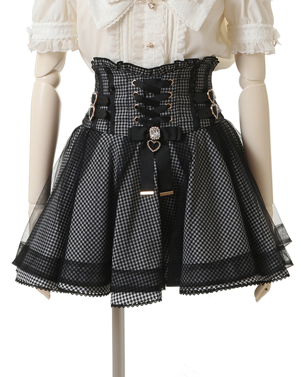 These trendy high-waisted scapans have a tulle-wrapped design. The corset-like high-waist design and voluminous flared silhouette provide a great styling effect, and the design is easy to coordinate with a variety of tops. The inner lining comes with shorts pants, so you can wear the mini length without worry.