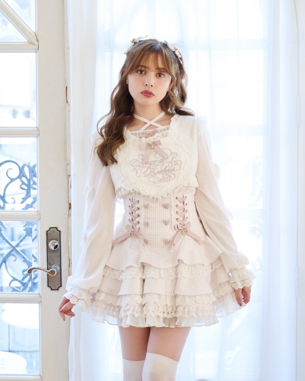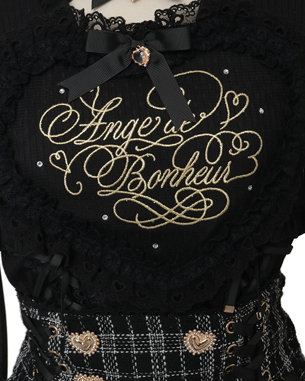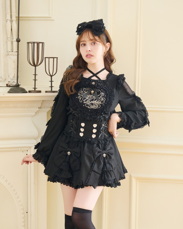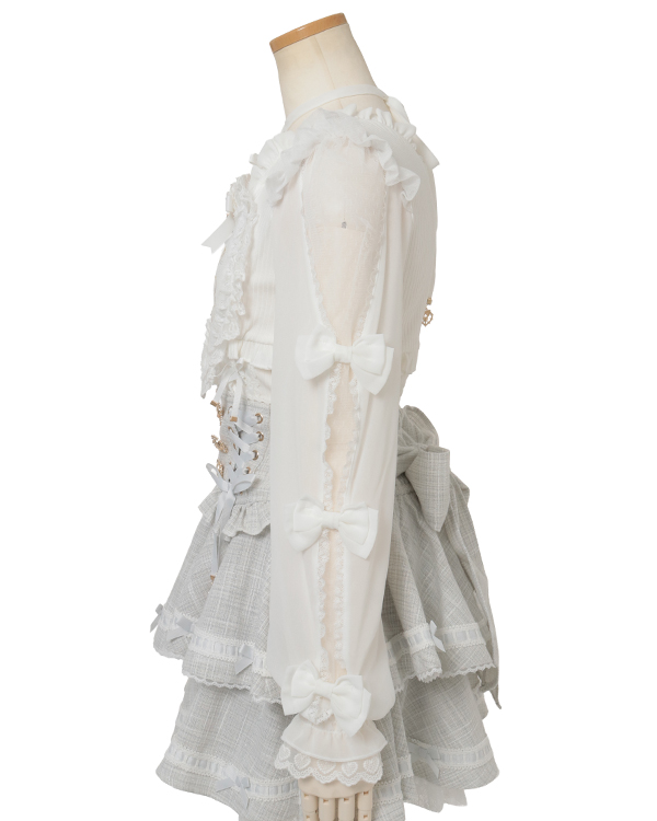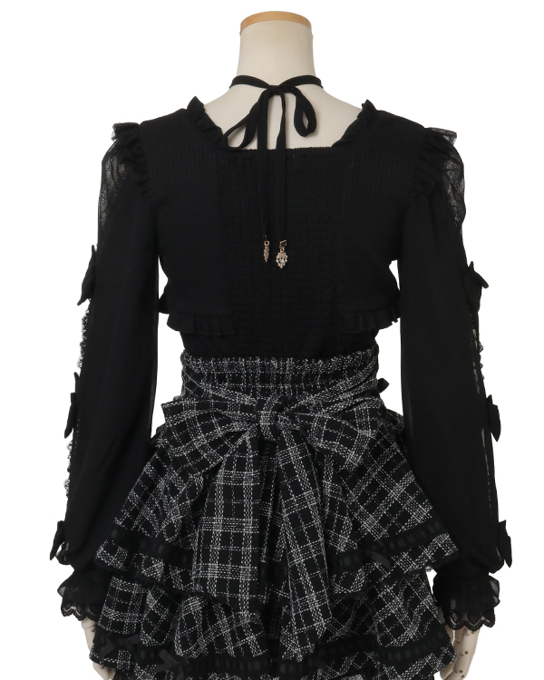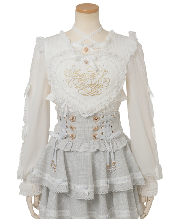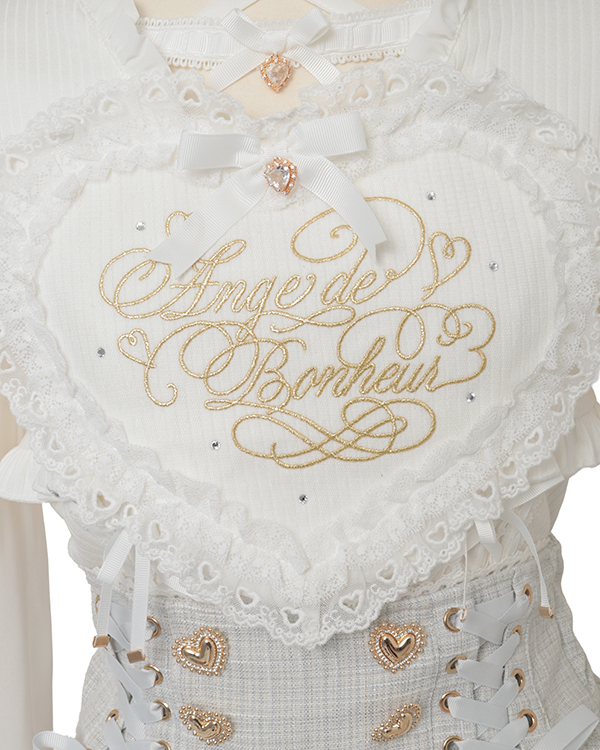 【PRE-ORDER】Frill Heart Ribbon Sleeve Tops