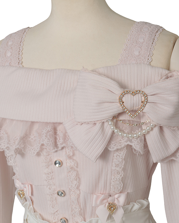 COMING SOON 【PRE-ORDER】Frill Heart Ribbon Sleeve Tops