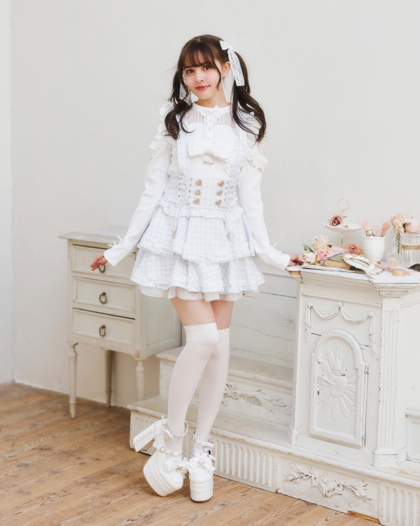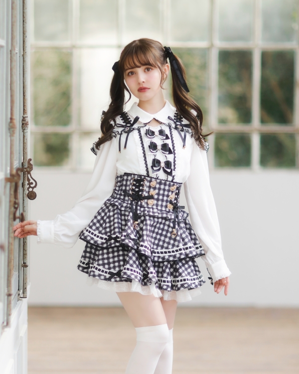 【PRE-ORDER】Ladder Ribbon Gingham Tiered Skirt-Pants