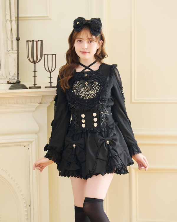 COMING SOON 【PRE-ORDER】Front Ribbon Frill Skirt-Pants