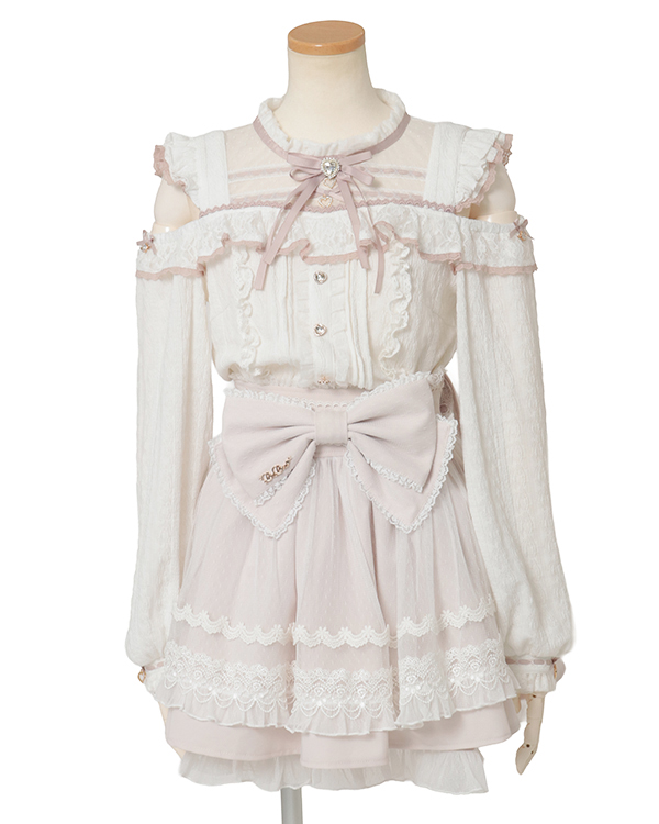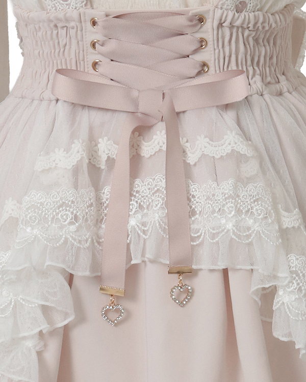 Front Ribbon Frill Skirt-Pants